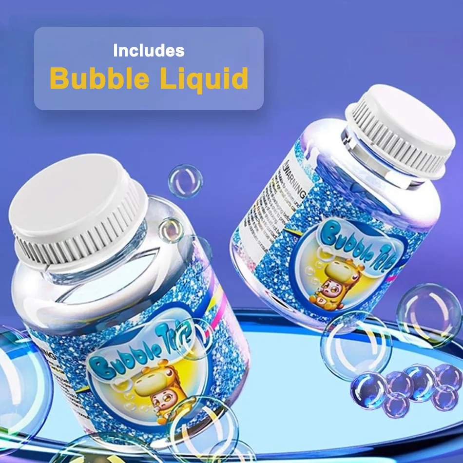 - Includes bubble solution bottle – ready to play instantly